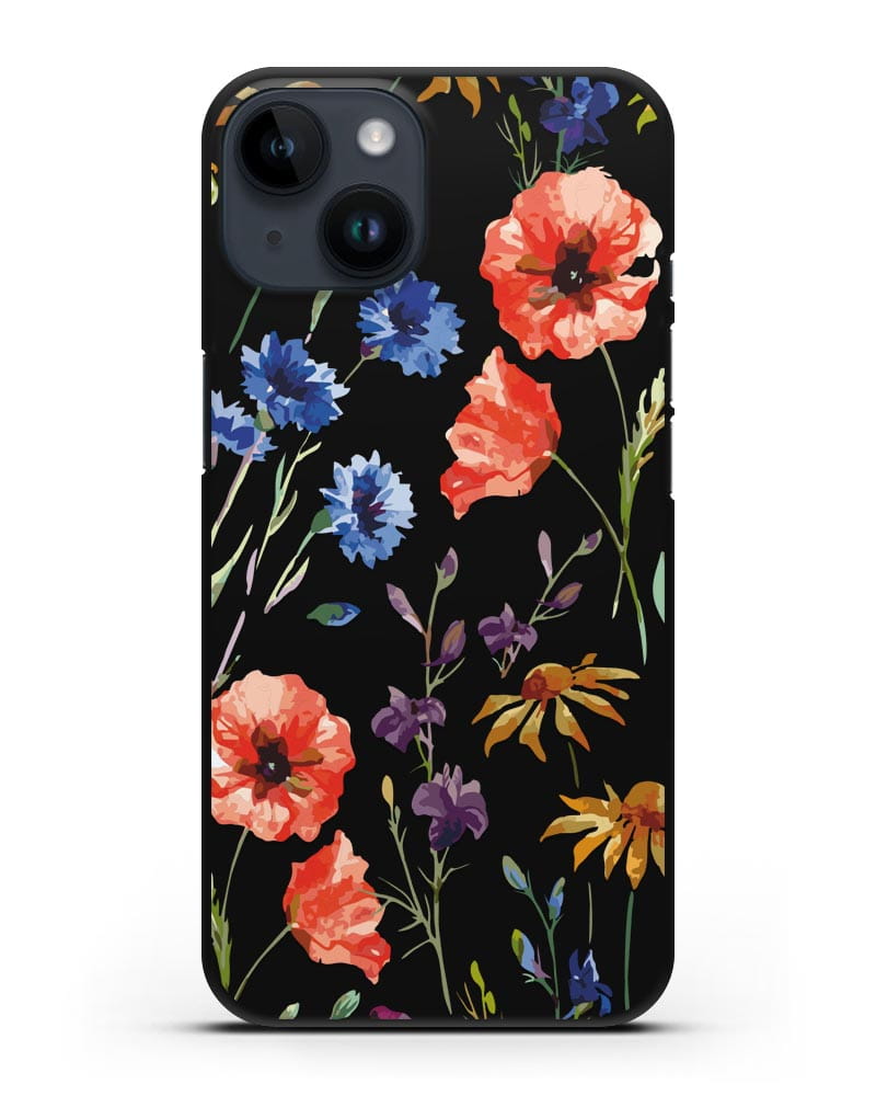 • Чехол Полевые цветы силиконовый черный на iPhone 14 | Вид 1