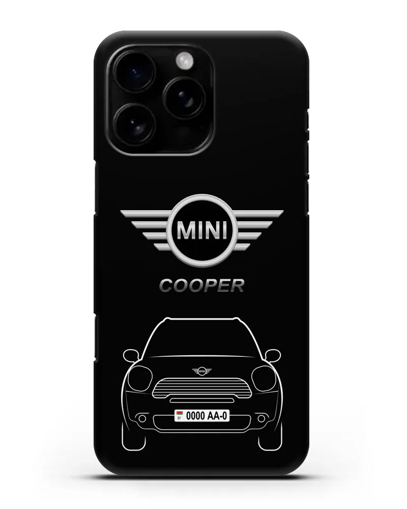 Чехол Mini Cooper с номерным знаком для iPhone 16 Pro Max силиконовый