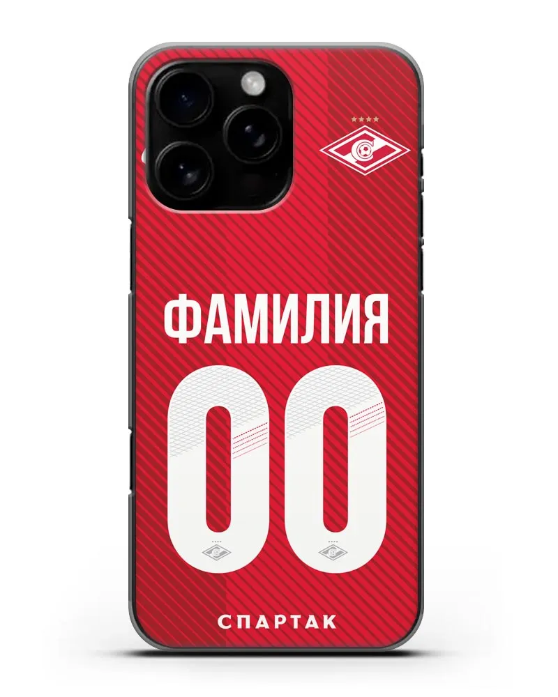 Именной чехол ФК Спартак Москва с фамилией и номером (сезон 2018-2019) красная форма для iPhone 16 Pro Max силиконовый