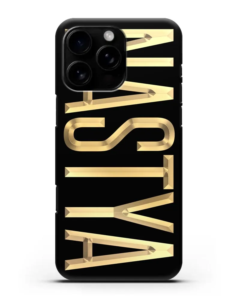 Чехол с именем, фамилией с золотой надписью для iPhone 16 Pro Max силиконовый