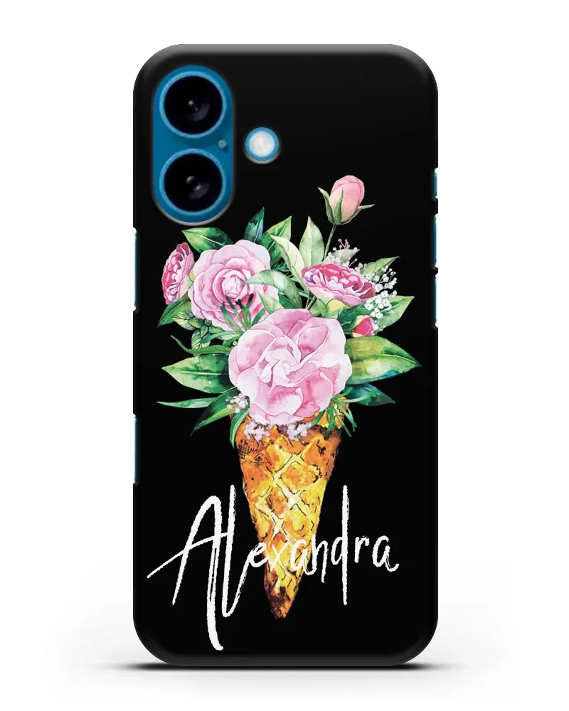 • Чехол Букет роз силиконовый черный на iPhone 16 | Вид 1